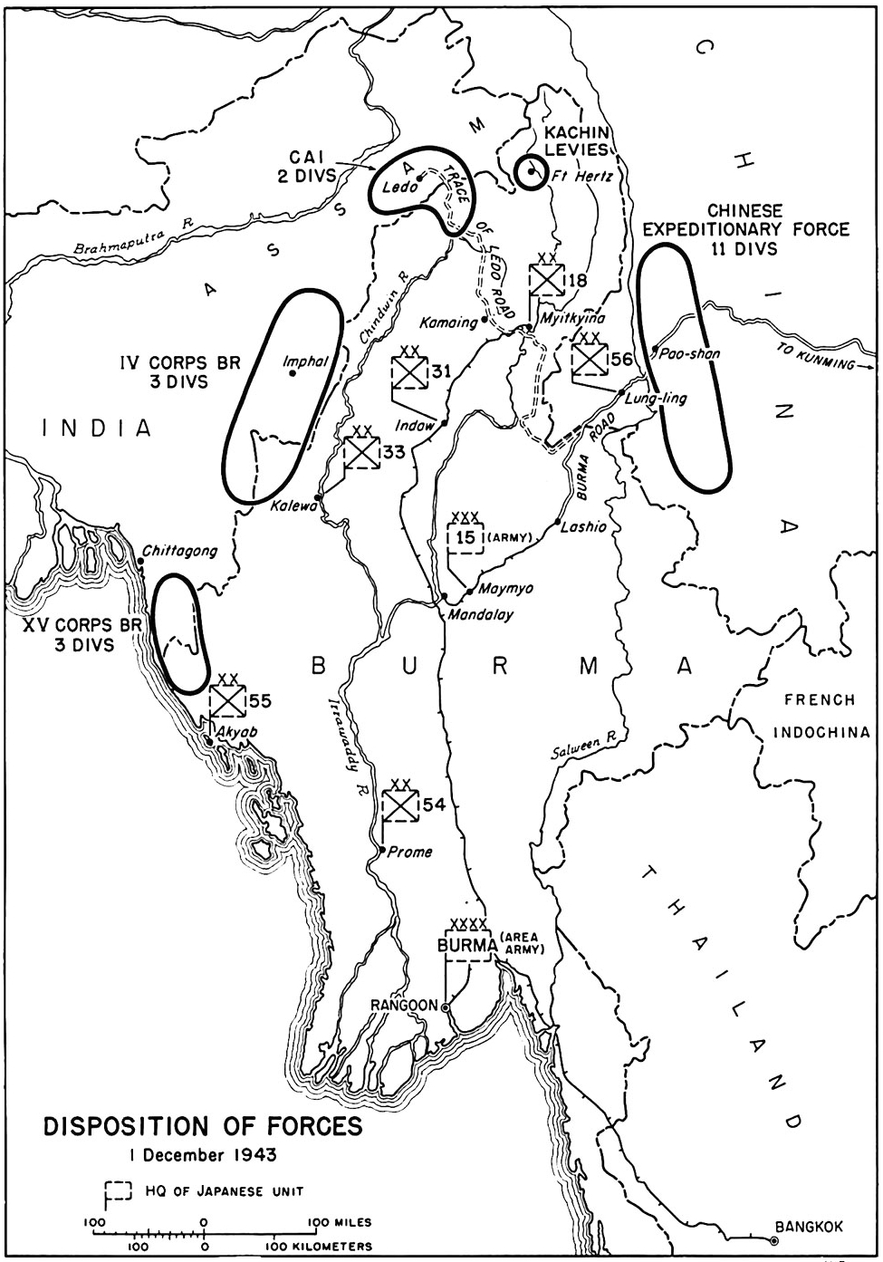 Stilwell’s reference to the shoestring that has been run up to considerable proportions refers to the Chinese Army in India, a force that was his own creation. In May 1942, he had looked at the 9000 Chinese soldiers who had retreated from Burma into India and seen the nucleus of a force that could play an important role in a campaign to retake northern Burma.