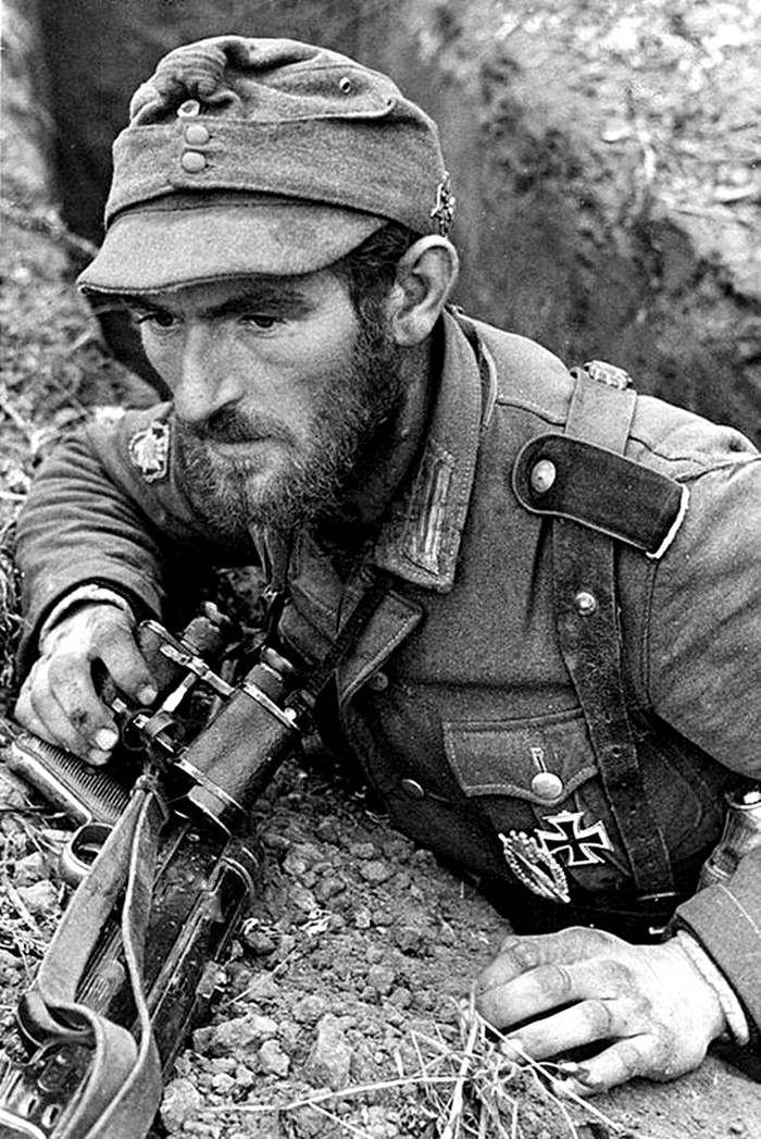 Monterumici was a formidable barrier rising 678 feet from the Setta Creek with high extending saddles to mutually supporting Monte Adone and Monte Sole. The ground gradually sloped toward the mountain from our positions along Highway 65 thus giving the enemy perfect observation of any activity within a range of over two miles. The only approaches to the mountain were heavily covered by enemy minefields and fire. The German 296.Infantry-Regiment and the 297.Infantry-Regiment (8.Gerbirgsjäger-Division) (Mountain Division) held Monterumici. This was one of the best enemy units in Italy.