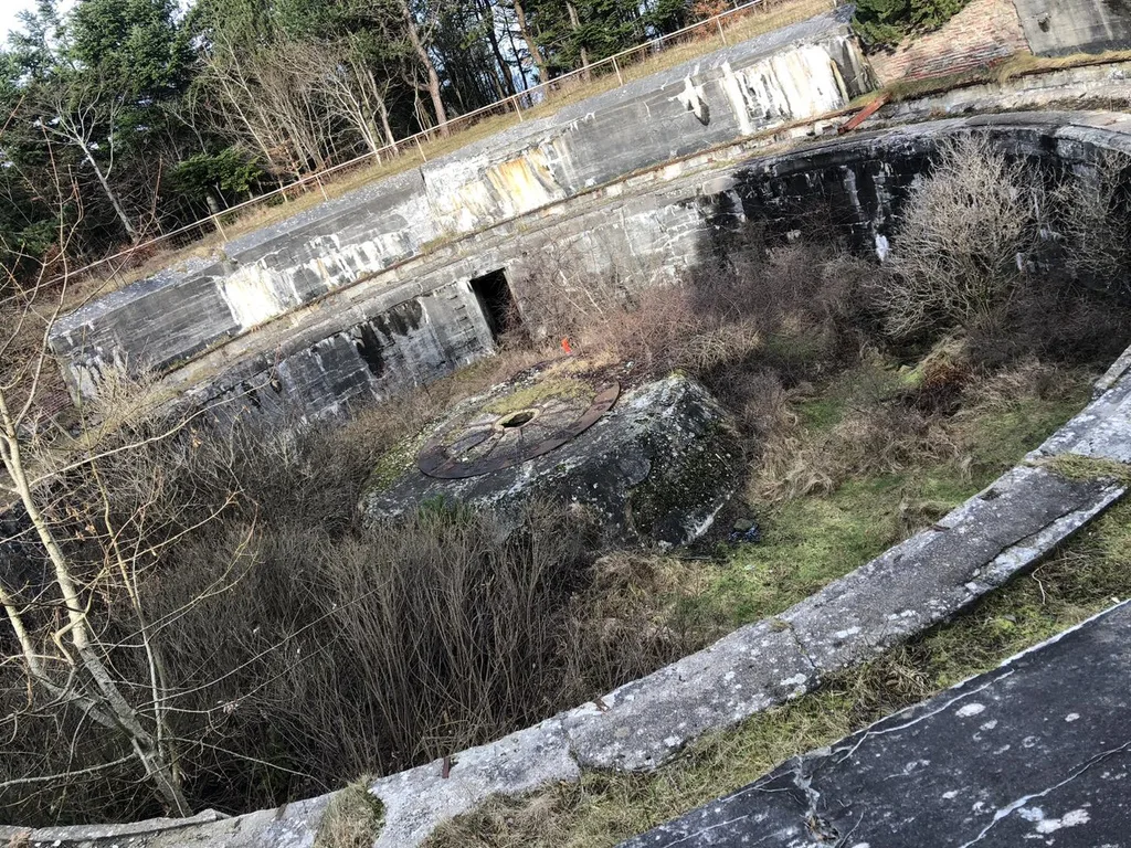 Begun in 1908, the Fort was incomplete at the outbreak of the war in 1914 but saw no action during WW-1 as the city of Thionville remained well within the German lines for the duration of the war. With the Compiègne Armistice of 1918, the Department of Lorraine was given to France and the Fort became French property. The three Thionville Forts became known as the Fortified Group of Thionville. Koenigsmacker was integrated into the Maginot Line, a Fortified Sector of Thionville in the 1930s serving as a sub-sector command post and backing up the newer Maginot Forts that were built about halfway between Thionville and the border with Luxembourg. The short 105-MM guns were replaced by 105-MM long guns removed from the German fortifications of Metz. The artillery range was thus increased from 9700 M (6.0 mi) to 12.700 M (7.9 mi). In 1940, Koenigsmacker was the command post for the 167th Fortress Infantry Regiment (RIF), which manned the nearby Maginot Line‘s sector. During the Battle of France, the Thionville area was bypassed and encircled by the German forces, with the Maginot Line defenses and the earlier fortifications seeing little action.
