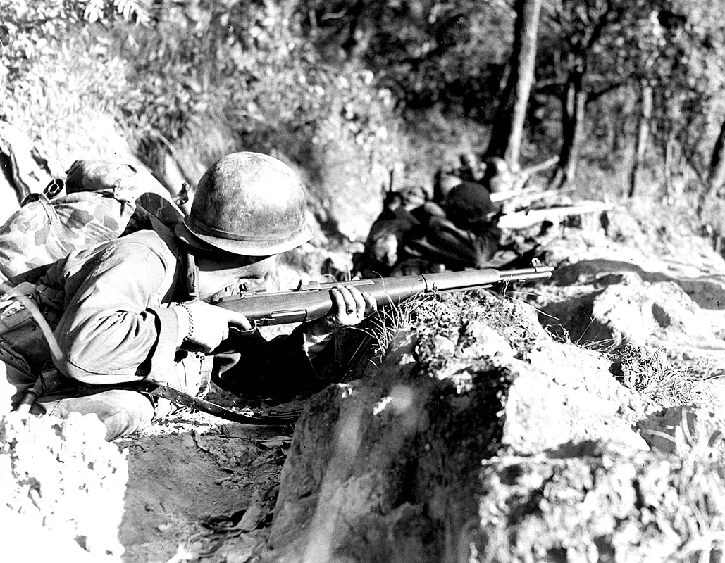 Soldiers of the 475th Infantry attempt to capture Loi-Kang hill on 17 January 1945. Stubborn Japanese resistance prevented their success until much later.