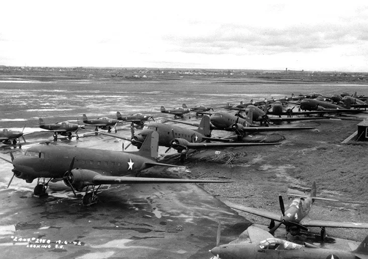 Landlease to Russia – planes lined up at Blatchford Field c. 1944 (Source City of Edmonton Archives)