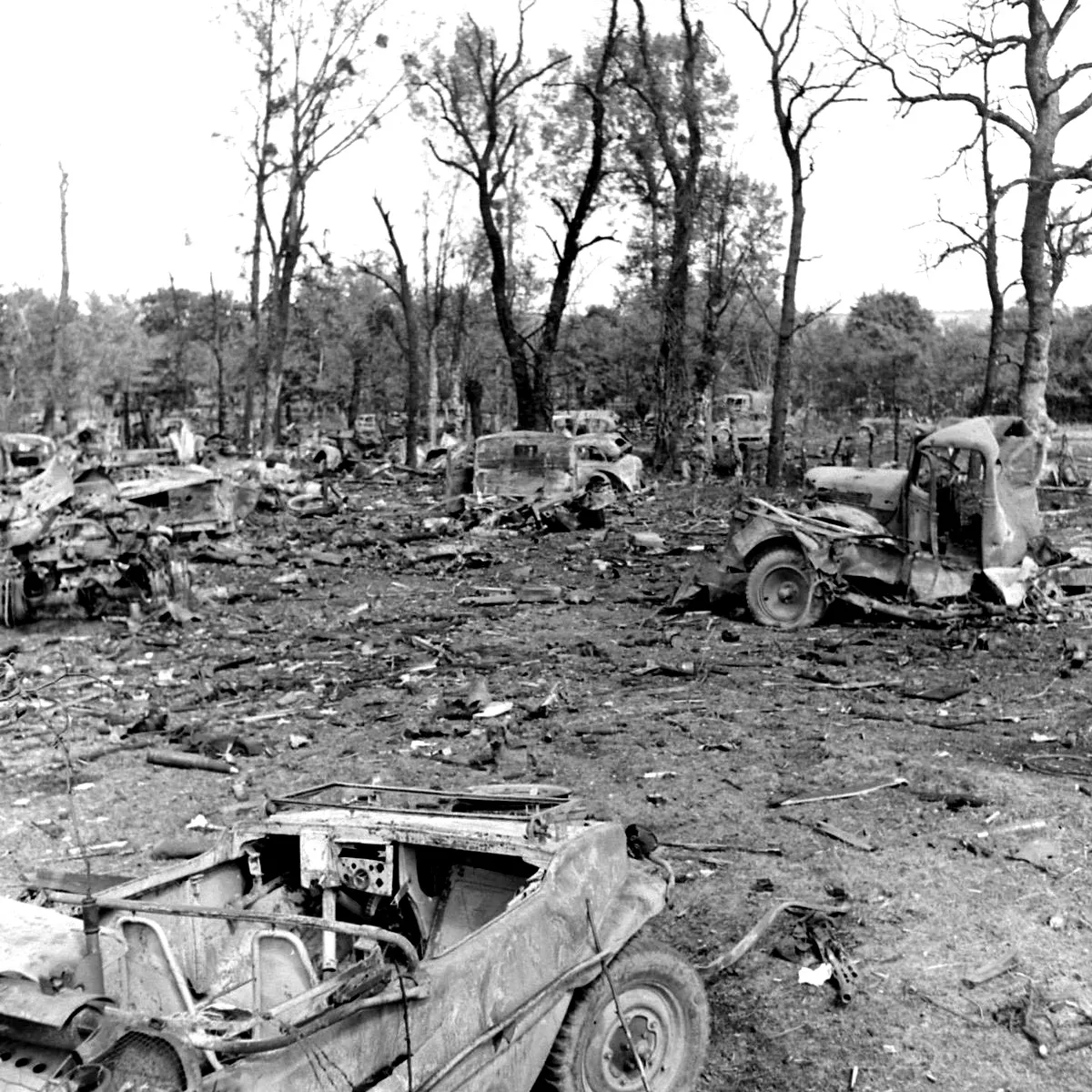Destroyed German vehicles in the Falaise Pocket, August 1944
