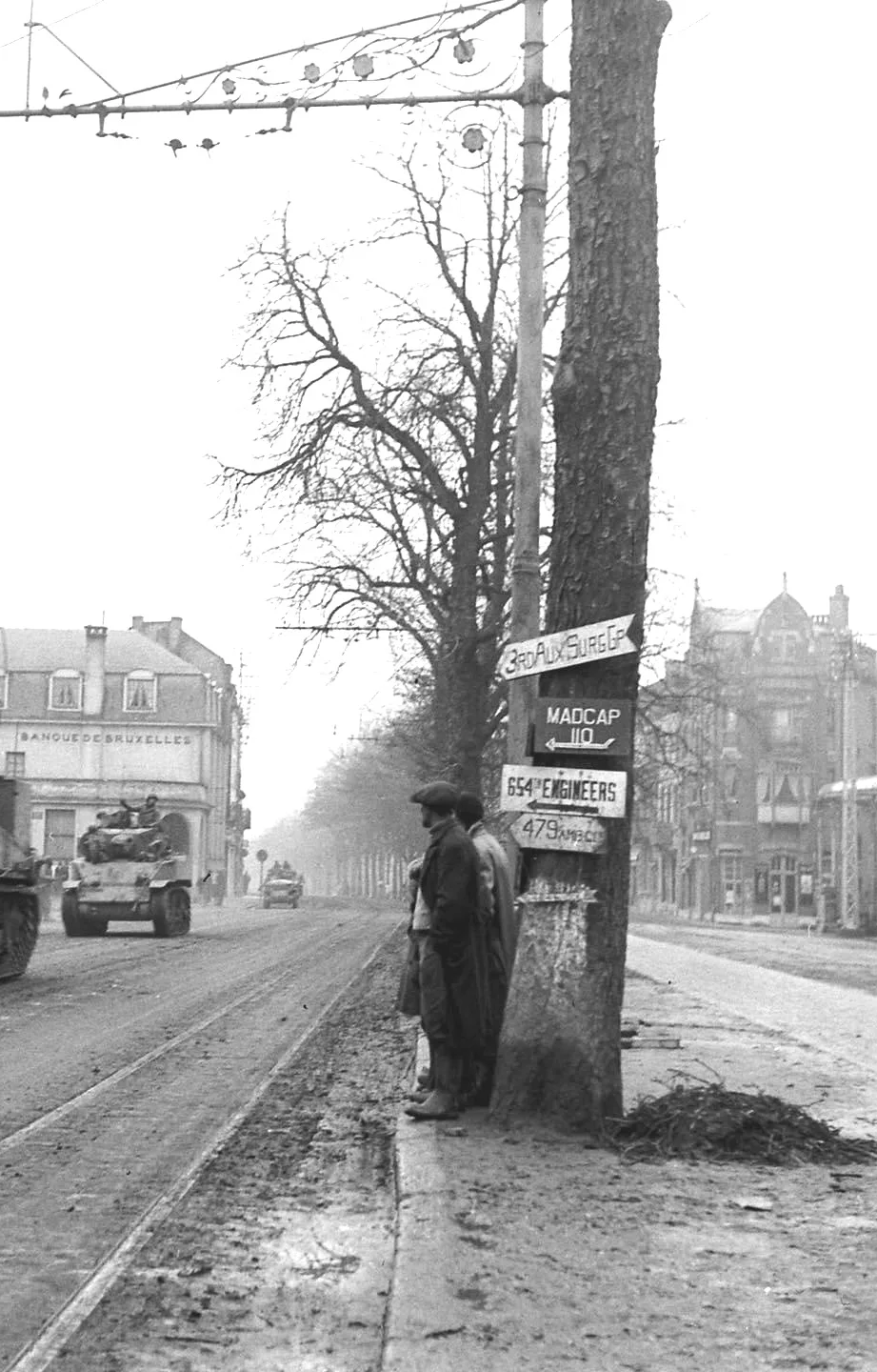 SPA-BE-US M31 ARV followed by an M5 light tank in Spa, Belgium during the opening days of the German offensive during the Battle of the Bulge, December 1944(scaled)