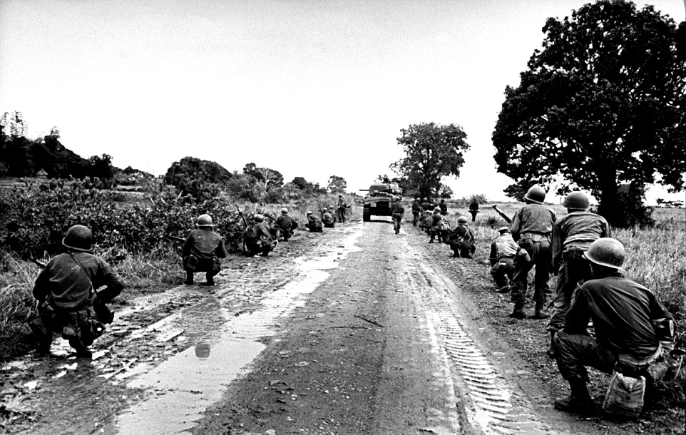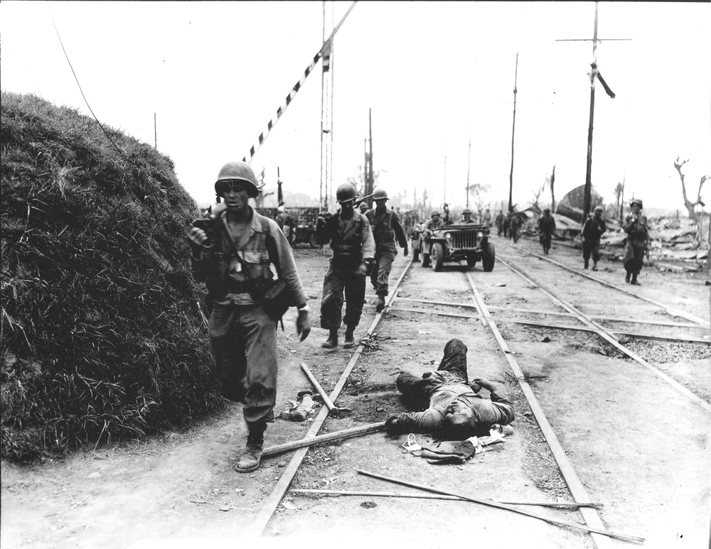 On the morning of February 9, the 148-IR supported by artillery, 4.2-inch mortar fire, and three light tanks, continued the attack to the southwest where it met bitter resistance in the vicinity of the Paco Railroad Station and the Paco Church. Enemy resistance managed to limit the regiment’s advance to 300 yards for the entire day. The 3/145-IR continued to hold against small enemy attacks in the Polo Area. This was considered a most important mission as it not only denied the enemy his main route of escape but also denied, his access to a position from which he could attack the Corps’