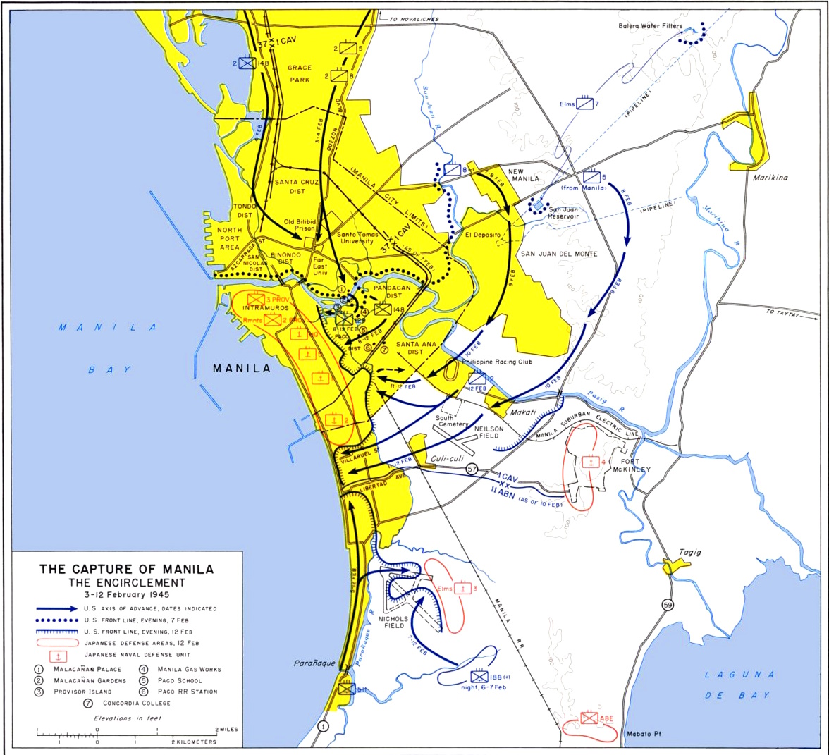 In summary, I think that it can be said that the division had accomplished its mission thus far by crossing the Pasig River and seizing a major portion of the heart of Manila south of the River in preparation for the launching of the attack against the “Walled City (Intramuros). The capture of this last enemy stronghold would definitely mean the end of the Battle of Manila. To date, the division had accounted for approximately 13.000 enemy killed and 459 enemy prisoners.