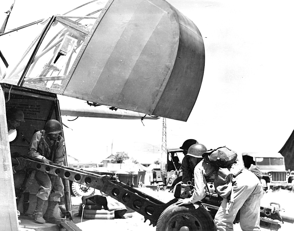 The time required for unloading was unduly long. To facilitate unloading, numerous experiments were conducted, the most promising of which was the placing of powder charges in the tail section, with the view of blowing off the tail upon landing and seeking egress through the rear. Some troops might have actually used this method, but most abandoned it as being too dangerous to both men and equipment. Of gravest concern to the gliders was the fact that our pilots had had very little experience in flying this craft, and also that the nose wheel frequently broke through the floor upon landing, and ripped its way through the entire craft. Training through April and May was at a terrific pace. Much attention was given to the balancing of loads to provide for the proper distribution of weapons to provide security for each load. Recognition signals were worked out. Assembly aids and various plans for assembly were worked out and rehearsed, and toward the latter part of May, the division was ready.