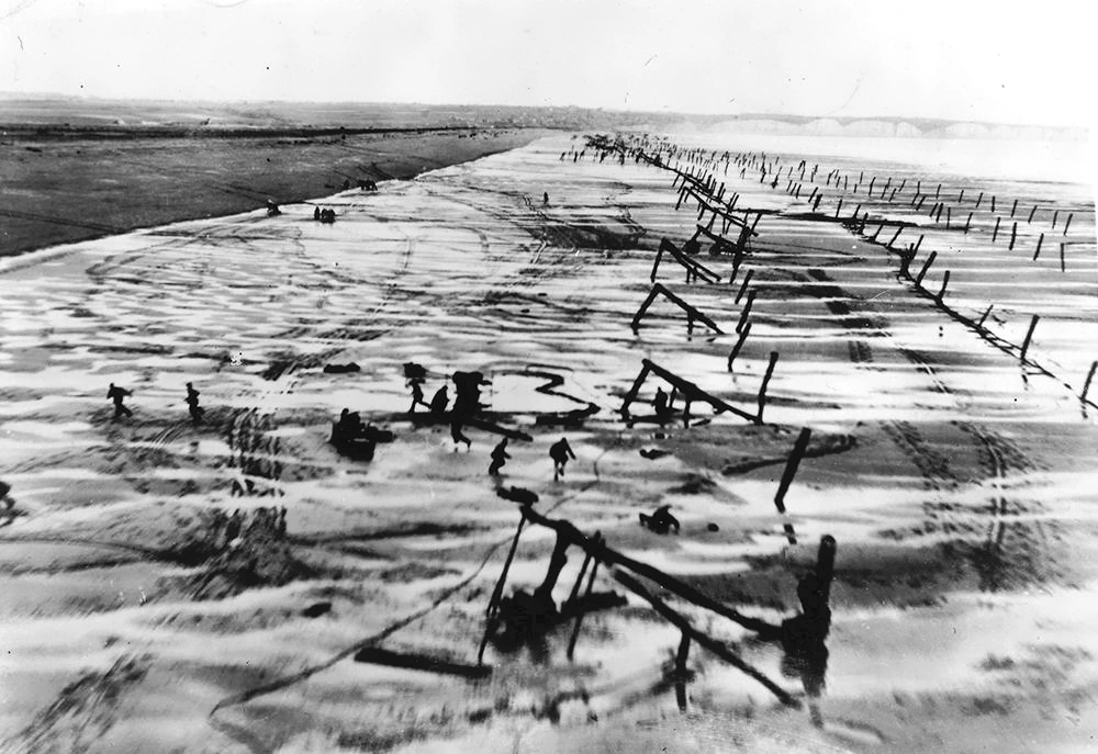 An overwhelming picture presented itself to the regimental commander from the church tower of St Come du Mont. Before him lay the coast and the sea. The horizon was strewn with hundreds of ships, and countless landing boats and barges were moving back and forth between the ships and the shore, landing troops and tanks, It was an almost peaceful picture; in the combat report which I submitted at the time to the Fallschirmjäger Army, I wrote that it reminded me of a beautiful summer day on the Wannsee. The noise of battle could not be heard, and from the church tower there was no sign of German defense activities. Only a shot rang out here and there whenever the sentries of the German battalions came in contact with Allied paratroopers.