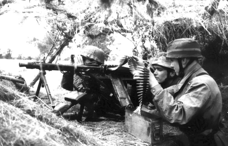The troops available for the defense against and Allied landing were not comparable to those committed in Russia. Their morale was low; the majority of the enlisted men and noncommissioned officers lacked combat experience, and the officers were in the main those who, because of lack of qualification or on account of wounds or illness, were no longer fit for service on the Eastern Front. I should, of course, add that this is the personal opinion of a regimental commander who was transferred to Normandy in May 1944 and that his impressions were gained from attendance at training maneuvers and tactical rides, during the first days of combat. It is possible that his experience was particularly unfortunate. It should not lead to any generalization. The situation with regard to the weapons and equipment of the forces in Normandy was nothing short of deplorable. Weapons from all over the world and from all periods of the twentieth century seemed to have been accumulated in order to convey the impression of a mighty force. Later on, at Carentan, in the sector of the 6.Fallschirmjäger-Regiment, four different types of mortars (ranging in caliber from 78-MM to 81-MM) of German, French, Italian, and Russian make and seven kinds of light machine guns were committed on a front barely two kilometers wide.