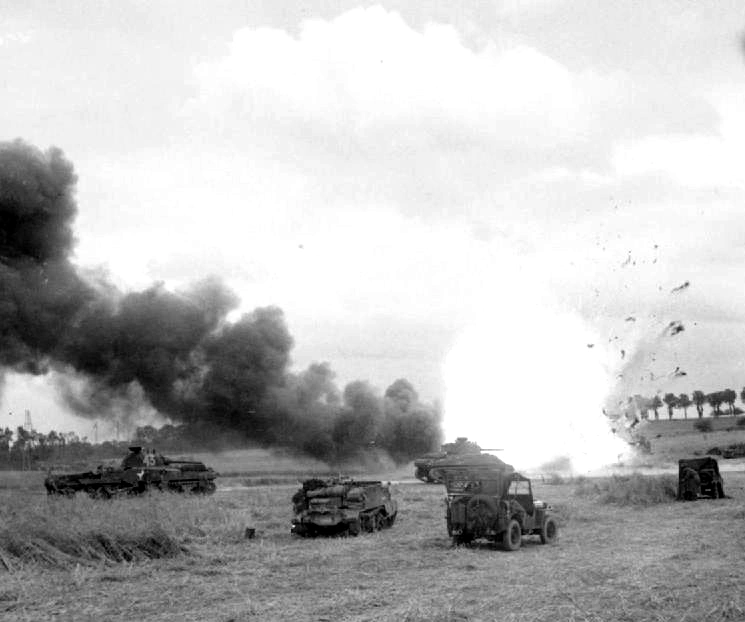 The 2.Battalion was engaged in combat between St Come du Mont and Ste Mère Eglise on both sides of the road with American units attempting to advance southward. On June 7, severe clashes took place principally in the area of Appeville, which was held by the enemy. After nightfall, enemy pressure increased in the east. Enemy reconnaissance patrols succeeded in infiltrating the weakly held German main line of resistance in terrain hidden from observation. About 2200, two American armored reconnaissance cars broke through and succeeded in reaching the Carentan road. A regimental messenger destroyed one of them directly in front of the regimental command post with a magnetic AT hollow charge, and the other was put out of commission at the southern exit of St Come du Mont by AT fire.