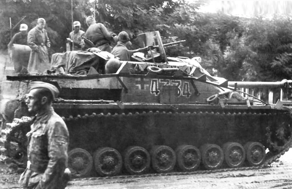 On the morning of June 13, about 0700, the attack was launched from the assembly positions. On June 12, the Americans had apparently only employed patrols in order to reconnoiter the new German position. In any event, during the first two hours of the attack, the 17.SS-PGD elements did not come into contact with the enemy. About eight hundred meters west of the northwestern edge of Carentan, the assault gun units encountered AT elements which prevented them from advancing any further. About 0900, the SS troops and paratroopers made contact with strong American elements; it was my impression that these were not organized for defense but were in the process of advancing.