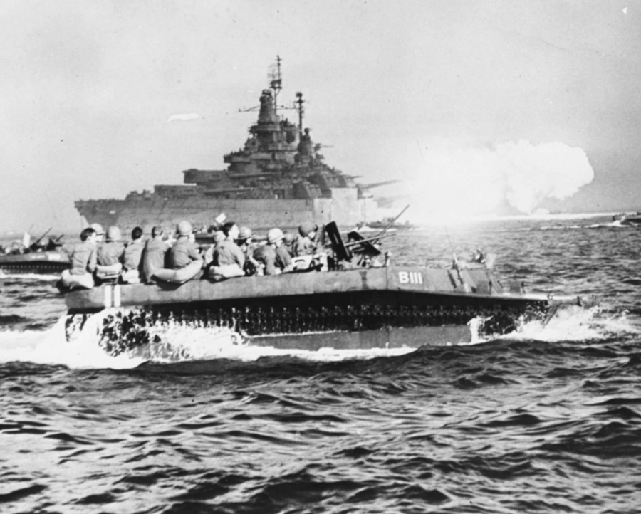 Forty Amphibious Track Vehicles were necessary to transport the assault echelons of the battalion landing team. This does not include the 14 Amphibious Tanks which comprised the first wave.