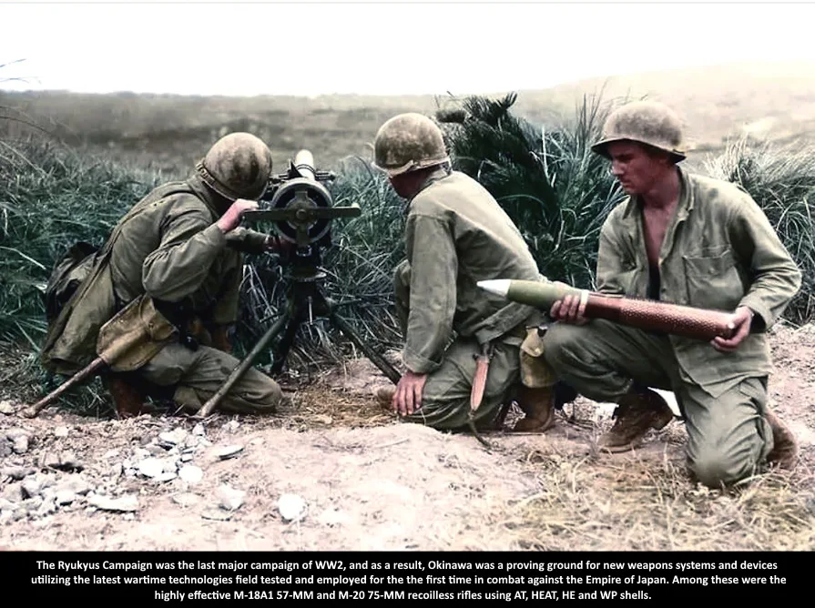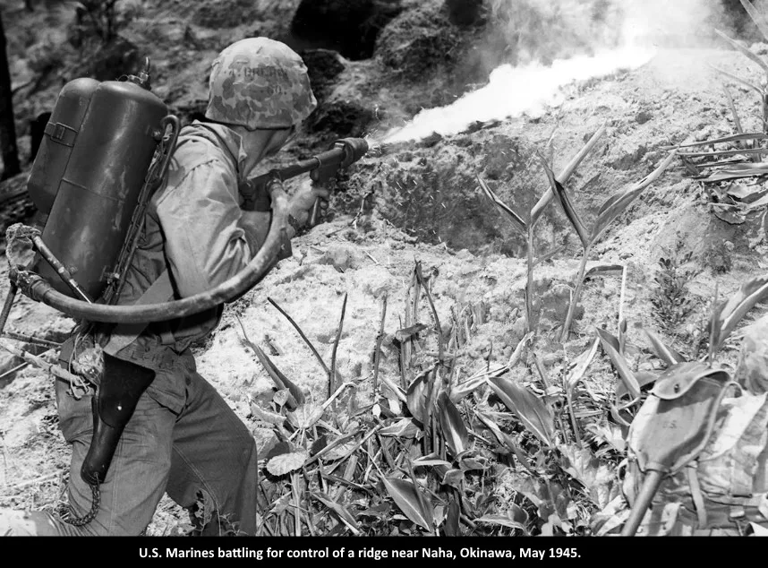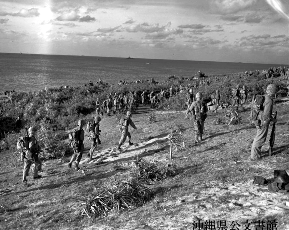 The 3/383, after taking the Phyllis Hill continued to push rapidly southwest to secure the Hill 59 – (7863-Q) against strong and determined enemy resistance from the high ground near Yunagusuku. In addition to the determined enemy resistance encountered all along the front of the regiment during the advance, constant flanking fire from the high ground west and northwest of Iwa – (7864) rained down on the right flank and rear of the 2/383. At 1700, despite this flanking fire, the battalion advanced up the northwest slopes of the Hill 79-F – (7763-N) against additional enemy fire to the front. Due to the heavy enemy fire falling across the regimental front their was no further advance and at the close of the period front lines were established on the Hill 79-F and Hill 59.