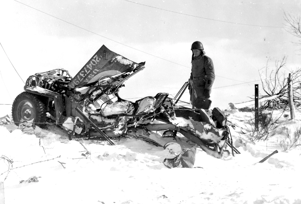 After darkness more specific orders came to the troop CP. These orders specified that at least two reconnaissance teams be posted on the Andler – Auw road, and requested overlays of the troop’s positions. (A reconnaissance team consists of 10 men, 4 in an armored car, 3 in a mortar jeep, and 3 in a machine gun jeep – there are three such teams to each reconnaissance platoon, and three platoons in each troop). The supply train for the troop was sent to Schoenberg (Belgium) with instructions to withdraw to Vielsalm (Belgium) if Schoenberg was not suitable. The sergeant in charge found Schoenberg undesirable, went to Vielsalm, a move that drew commendation from Capt Lindsey later. With the reconnaissance-team outposts established, Lindsey ordered the platoon leaders to set their schedules of watches and have every man awake at 0500. Soon the troop’s operational pattern had settled down to quiet watchfullness and listening. Night visibility was exceptionally poor, and many of the men of the group interviewed mentioned that they had never recalled a darker night. At 0650, December 17, Capt Lindsey received orders from squadron headquarters directing him to send combat patrols towards Manderfeld and Auw for the purpose of establishing contact with the enemy. He planned to send one patrol from each platoon, probably of about one reconnaissance team in strength. Having made his plans, he summoned his platoon leaders shortly before 0760. The three lieutenants reported having come down to the CP in their armored cars. Lindsey was about to explain to them that the patrols should be sent out in three directions – one over the road from Andler to Auw, and two over the roads that led from Andler to Manderfeld. Before he could issue his orders, Sgt Earl L. Turner, radio operator for the third team of the 2nd Platoon, transmitted a hurried message, ‘Enemy has us surrounded’. He immediately went off the air. The group at the troop CP knew that this team was the one positioned further the east on the Andler – Auw road. It was commanded by Sgt Earl R. Ellingsen.