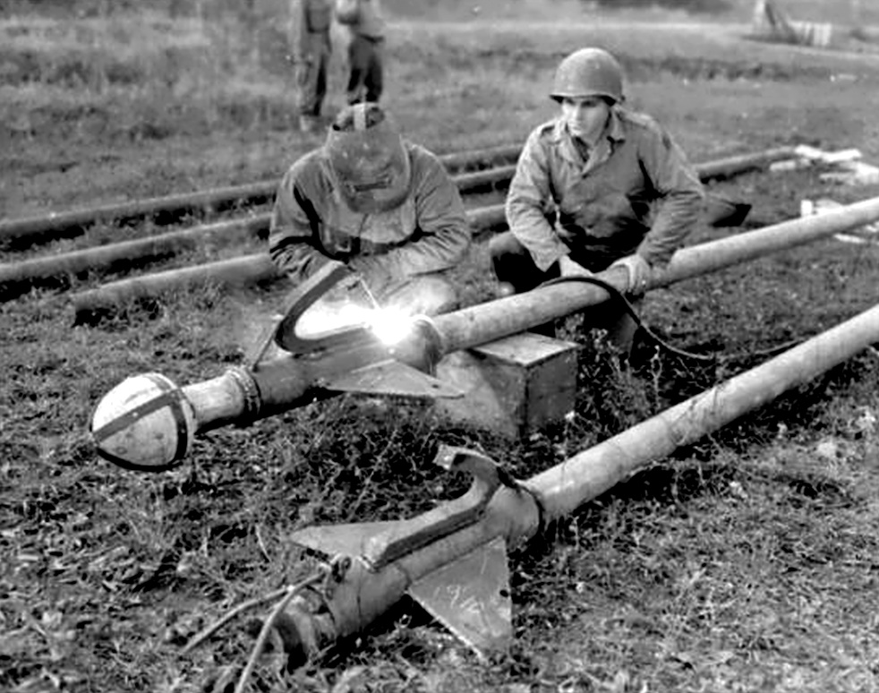 Pumping equipment forces the fuel through the pipeline, creating an emergent pressure of 300 pounds per square inch at the nozzle. This equipment is the standard Petrol Pumping Unit (PPU) now used for pipeline service. It is composed of a GMC-270 engine used in the standard 6×6 2.5-ton cargo truck, and a two-stage Byron-Jackson Centrifugal Pump. Further development of piping equipment is underway which may result in considerable modifications of the system described above.