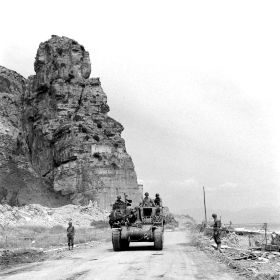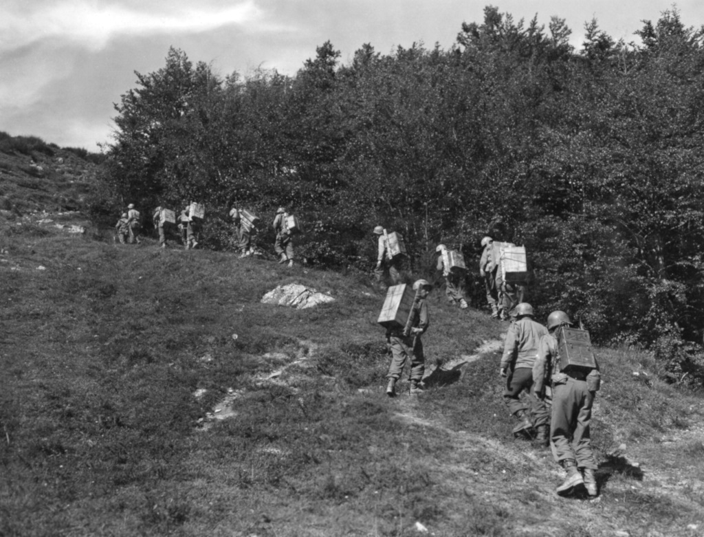 (Above) Troop movements in Italy were sometimes dry, sometimes muddy, sometimes snowy—but always dangerous in terrain dominated by snipers and artillery.