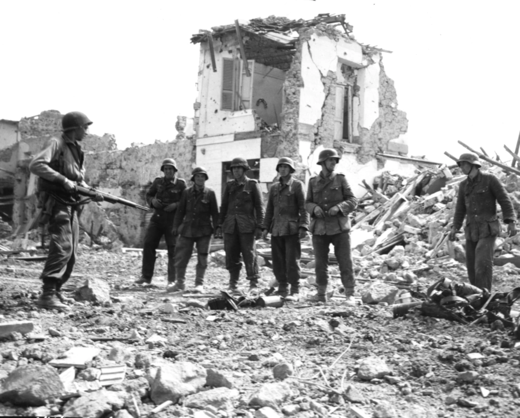Initially the enemy was somewhat disorganized, but they soon began to make use of every advantage the terrain afforded. Enemy reinforcements were moving up constantly. The 85-ID was opposed by the German 4.Fallschirmjäger-Division (Gen Heinrich Trettner) during the first ten days of fighting; following this period, elements of the 362.Infantry-Division (Gen Heinz Greiner), as well as miscellaneous units of the 715.Infantry-Division (Gen Hans von Rohr), and elements of the