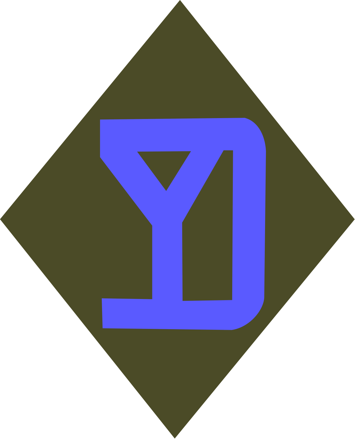 During World War One, a press conference of Boston newspapermen was called by the Commanding General to determine a nickname for this division, which had just been inducted from New England National Guard units. The adopted suggestion was, ‘Call it the Yankee Division’ and à dark blue monogrammed ‘YD’ on an olive drab background was officially designated as the division insignia.