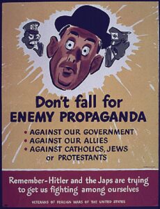 This post presents a curated selection of original U.S. World War II propaganda posters, not photographs. Designed to inform, influence, and mobilize the American public, these graphic works formed a central element of the wartime communication effort. In 2015, many of these posters were digitized and made widely accessible, offering a renewed perspective on the visual language, messaging strategies, and psychological impact employed by the United States during the Second World War. – European Center of Military History