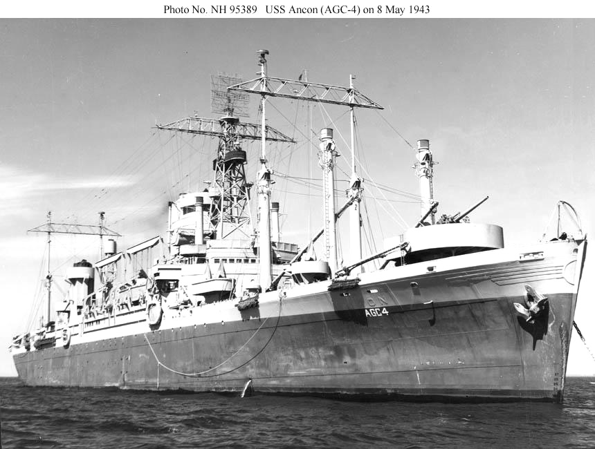 Although still operating primarily as a transport during Operation Torch, the ship was already being used in a command capacity, reflecting the evolving requirements of large-scale amphibious warfare. Recognizing this need, the Navy converted Ancon into one of the first dedicated amphibious command ships, redesignated AGC-4. In this role, she played a significant part in subsequent Allied operations, including the invasion of Sicily, the landings at Salerno, and the Normandy invasion, where she served as a flagship coordinating assault forces off Utah Beach on D-Day.