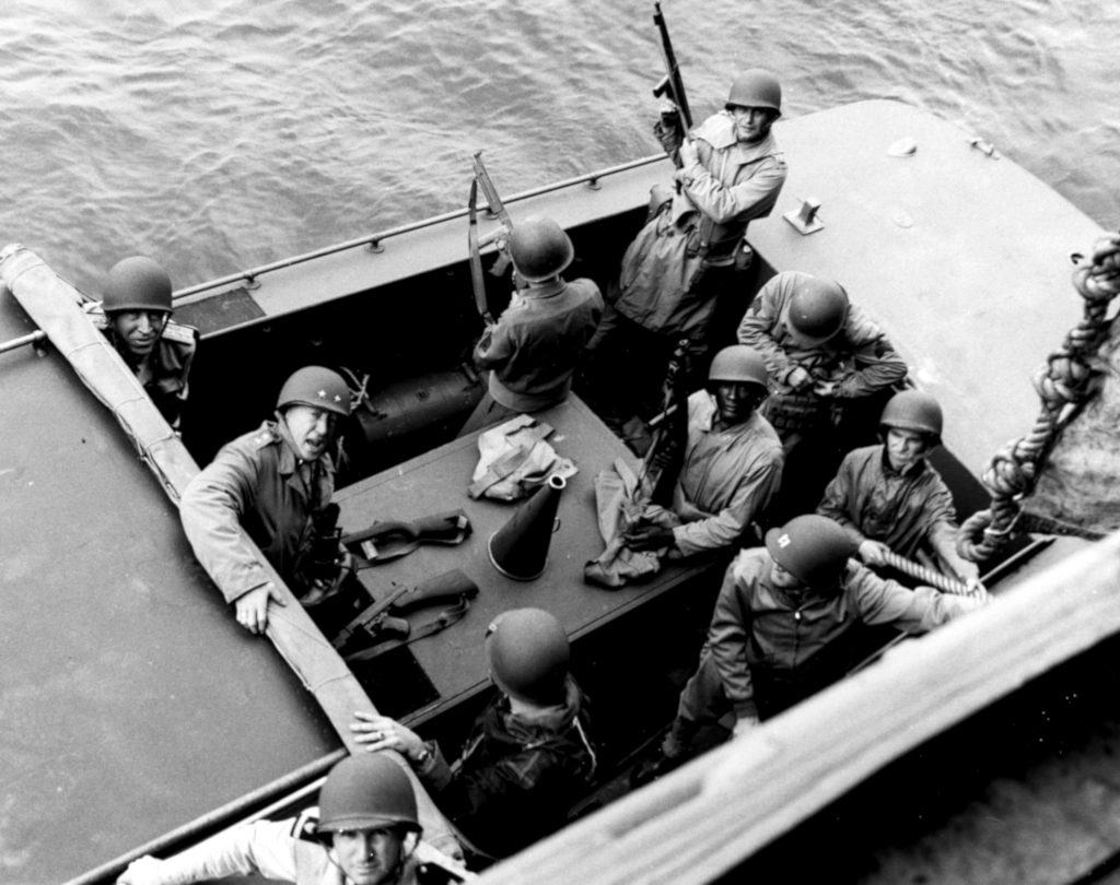 This division received many officer and enlisted replacements just prior to sailing. This was unfortunate, as practically none received amphibious training. The equipment now carried by officers and men is too heavy for amphibious work. I am sure that some men were drowned in capsized landing boats because of heavy equipment. I heard no complaints concerning the inadequacy of infantry equipment other than its weight. I observed no malfunctioning of equipment due to faulty design or construction.